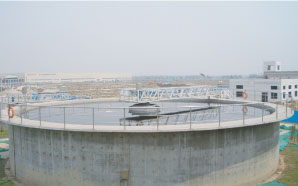 該設(shè)備采用中心傳動、垂架式,污水從進水管流入導(dǎo)流筒擴散后,均勻地向周邊呈輻射狀流出,呈懸浮狀的污泥經(jīng)沉淀后沉積于池底,驅(qū)動裝置帶動中心豎架旋轉(zhuǎn),并帶動刮臂及泥刮板轉(zhuǎn)動,將吸泥從池周刮向中心集泥槽后,靠池內(nèi)靜水壓由排泥管排出池外,水面的浮渣通過撇渣裝置撇向池邊,再由刮渣耙刮進排渣斗內(nèi)排出池外;而上清液則通過三角形出水堰板溢入出水槽內(nèi)排出。